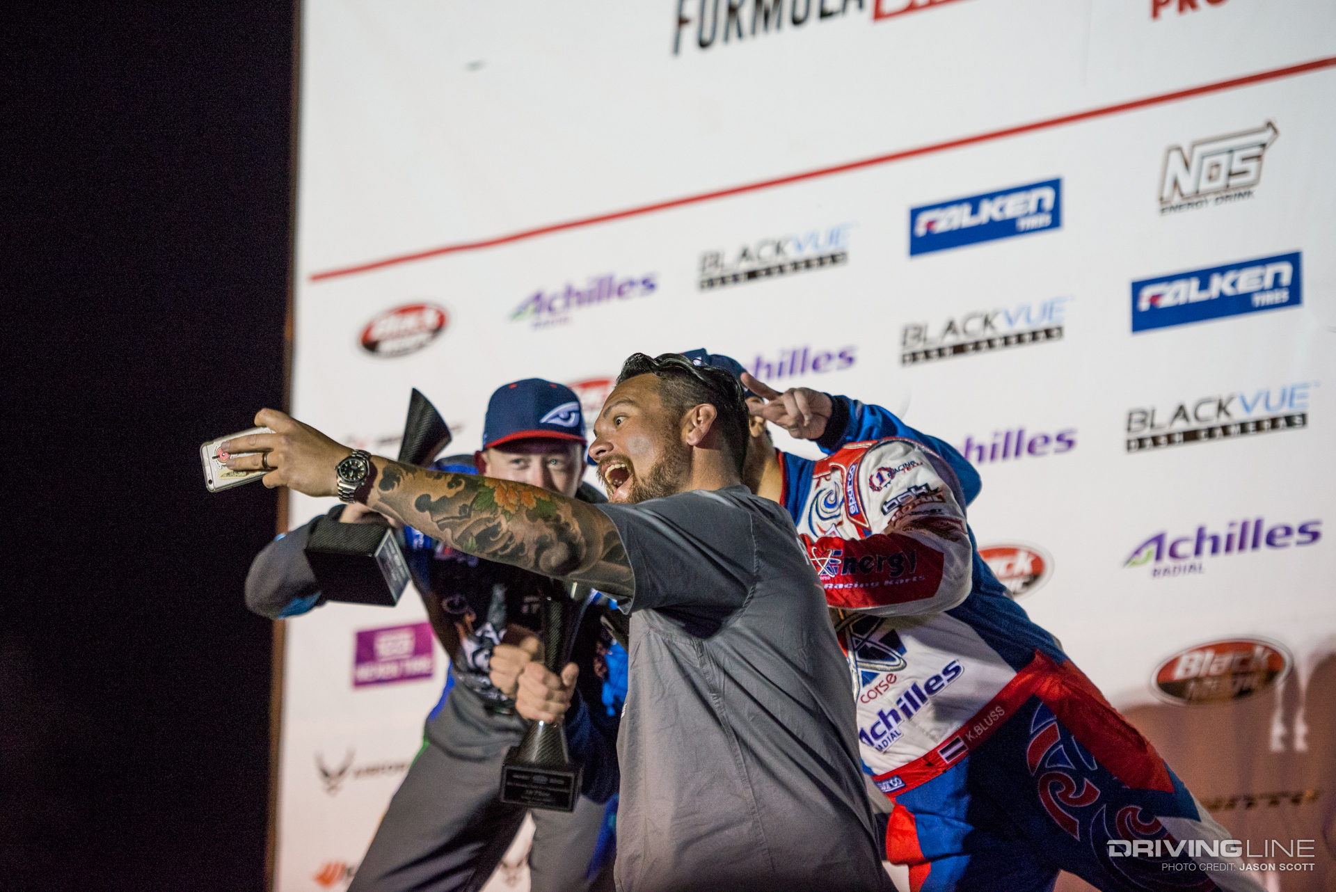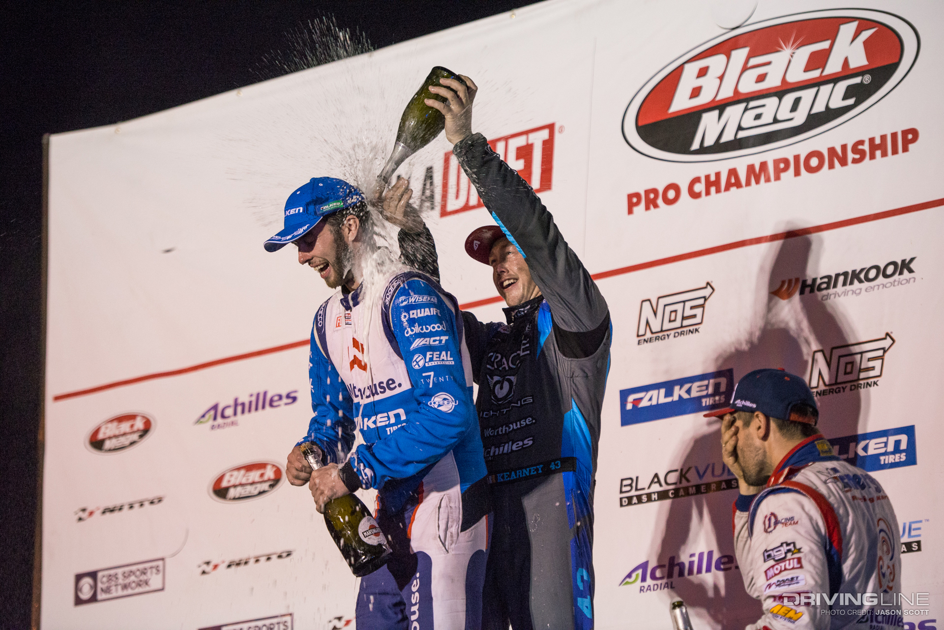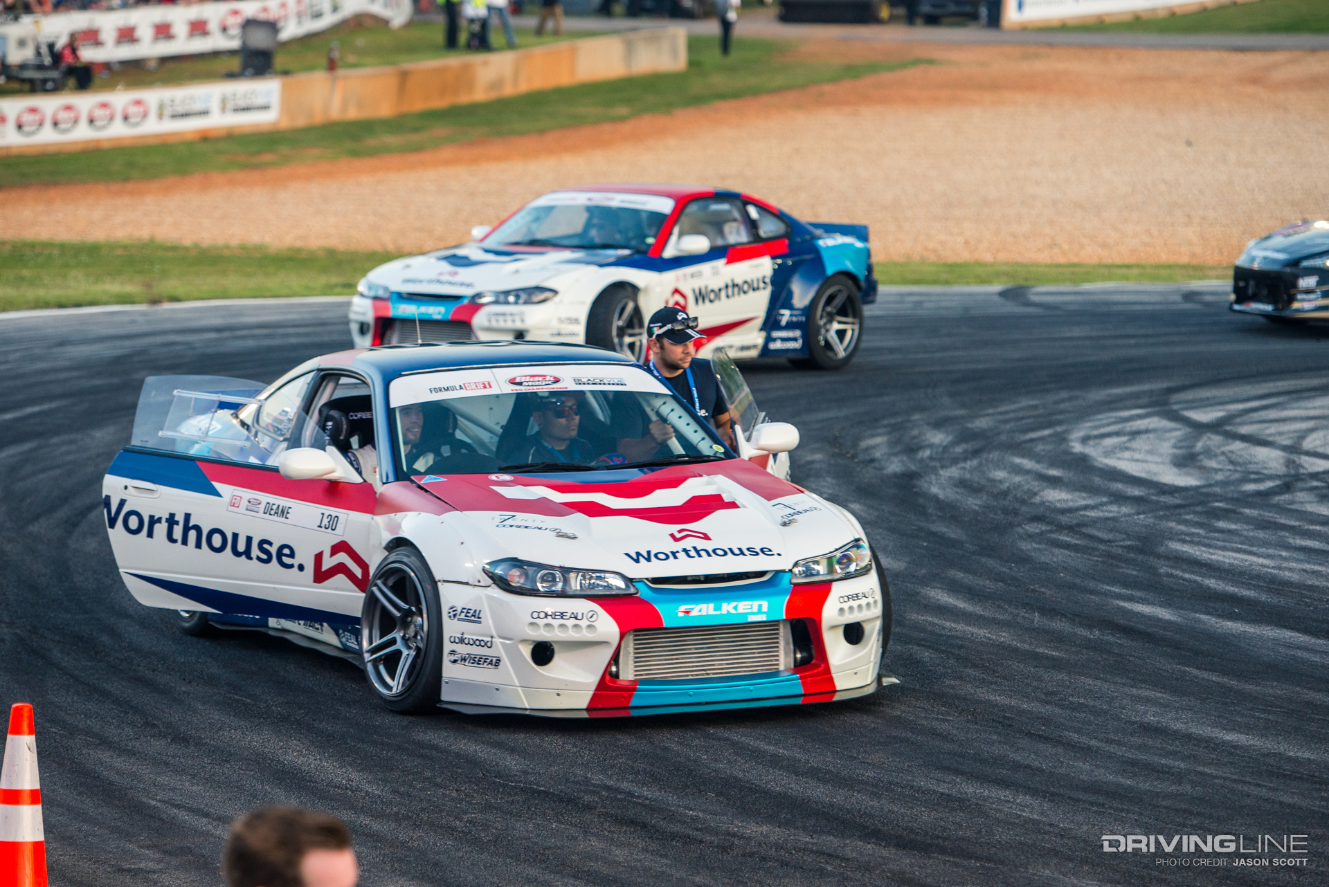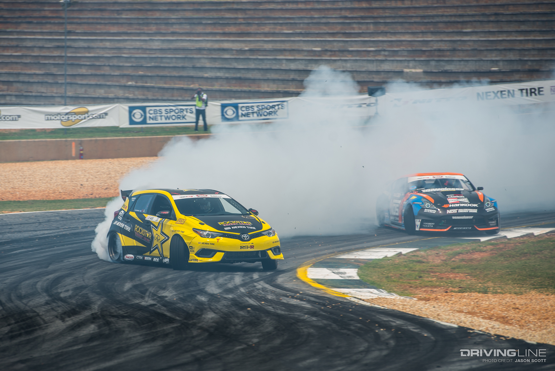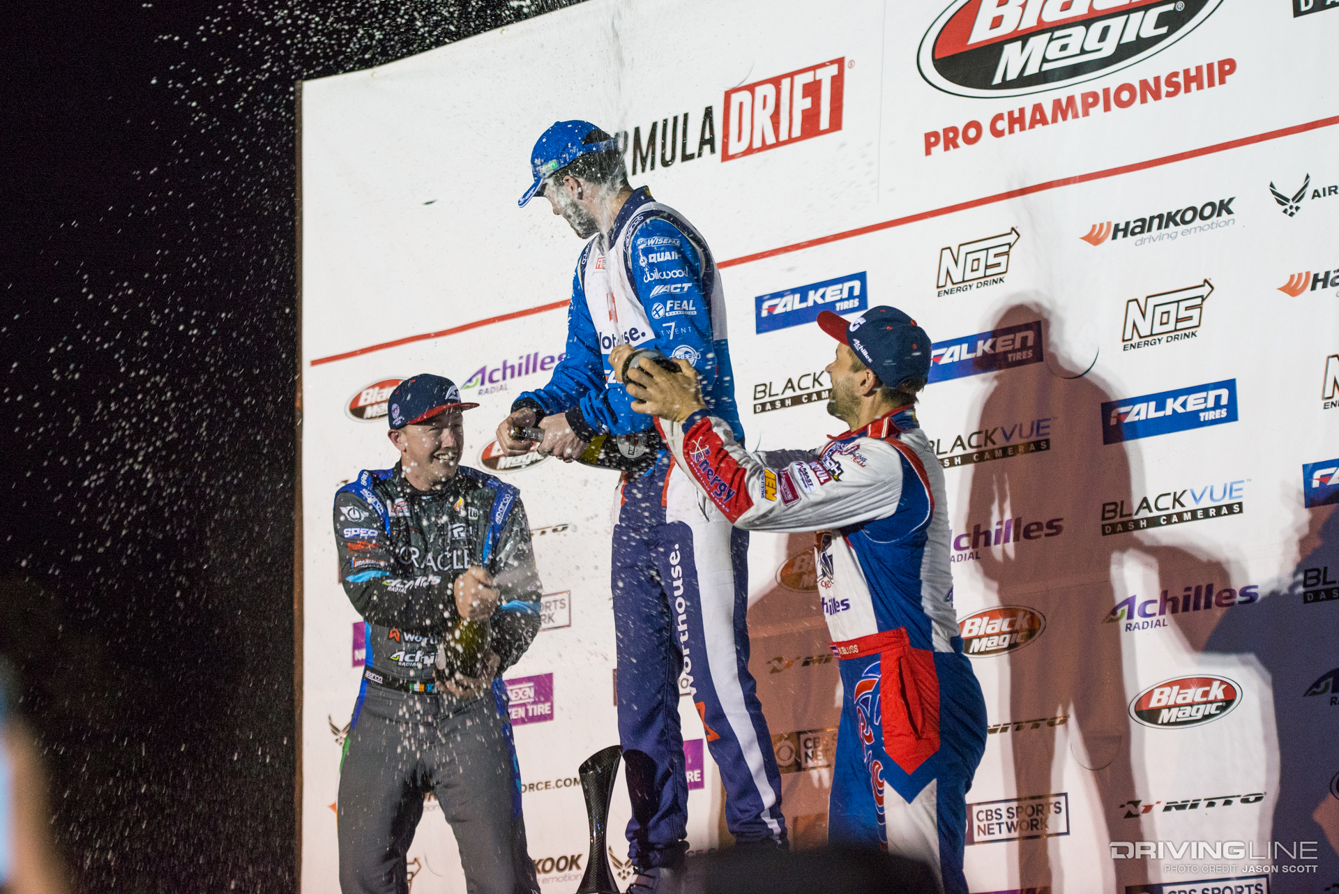 While all eyes were on Fredric Aasbo and Nitto Tire's Vaughn Gittin Jr. going into Round 3 of the Series, the Formula Drift gods had other plans for the Road Atlanta podium. Much to everyone's surprise, Orlando winner Aasbo didn't make it past the Top 32 tandems, and former Atlanta winner and No. 1 qualifier Gittin Jr. was unable to reproduce last year's results. This time, it was James Deane who ended up on top — yet again — tucking away his second event win this season after just three rounds, with fellow European drivers Dean Kearney and Kristaps Bluss on either side of him on the podium. Gittin Jr. landed in a respectable fifth place, also ranking fifth in the overall Series standings — still within reach of the championship.
