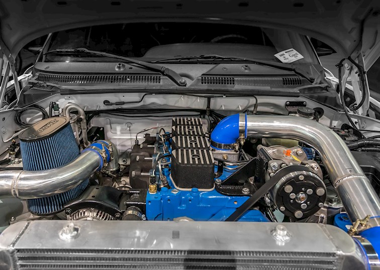 Though you could get a Dakota from the factory with a 5.9L V8, there was never a diesel option. Looking for more torque and fuel efficiency, Sercer Machine dropped in a 3.9L Cummins 4BT turbodiesel. With a relatively large engine bay, the revamped and intercooled diesel engine was made to look as though it rolled off the showroom that way.