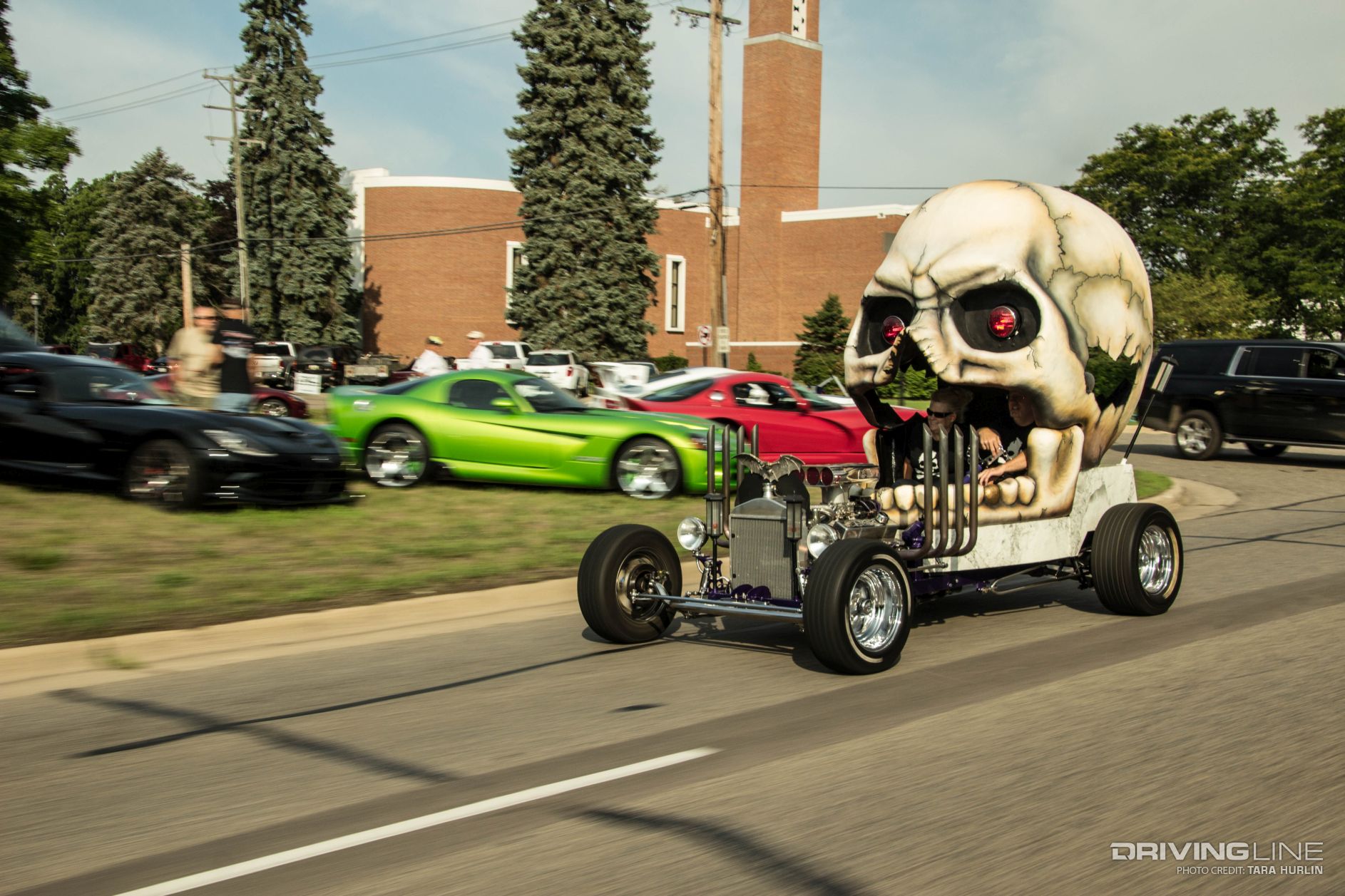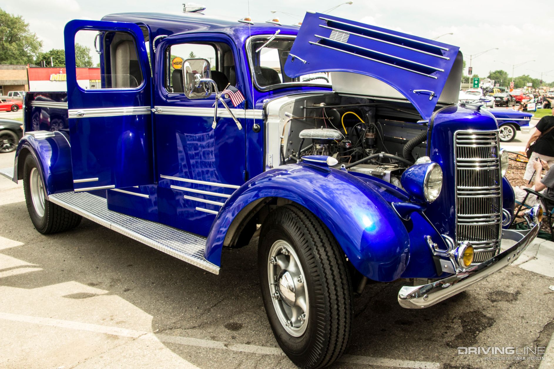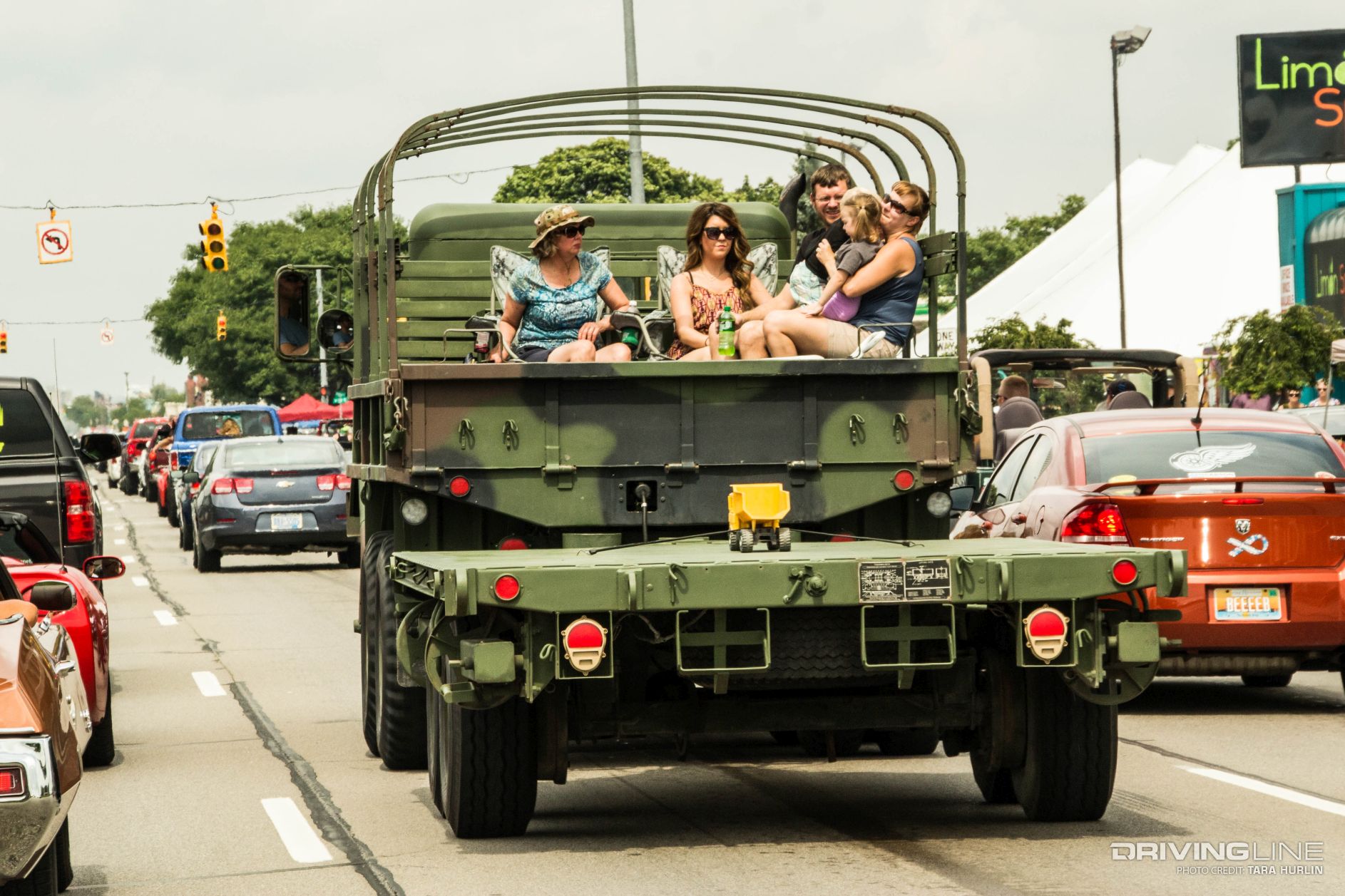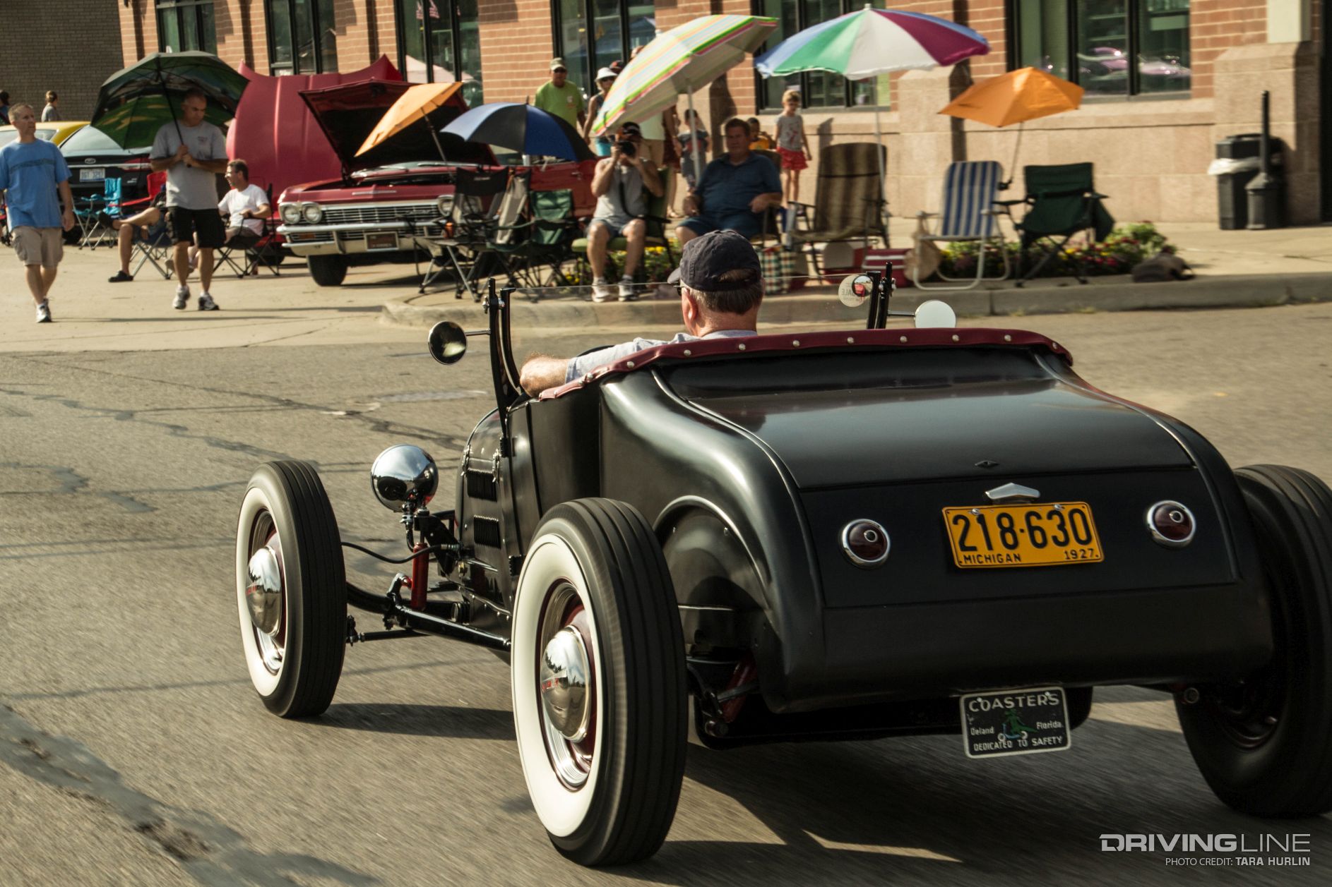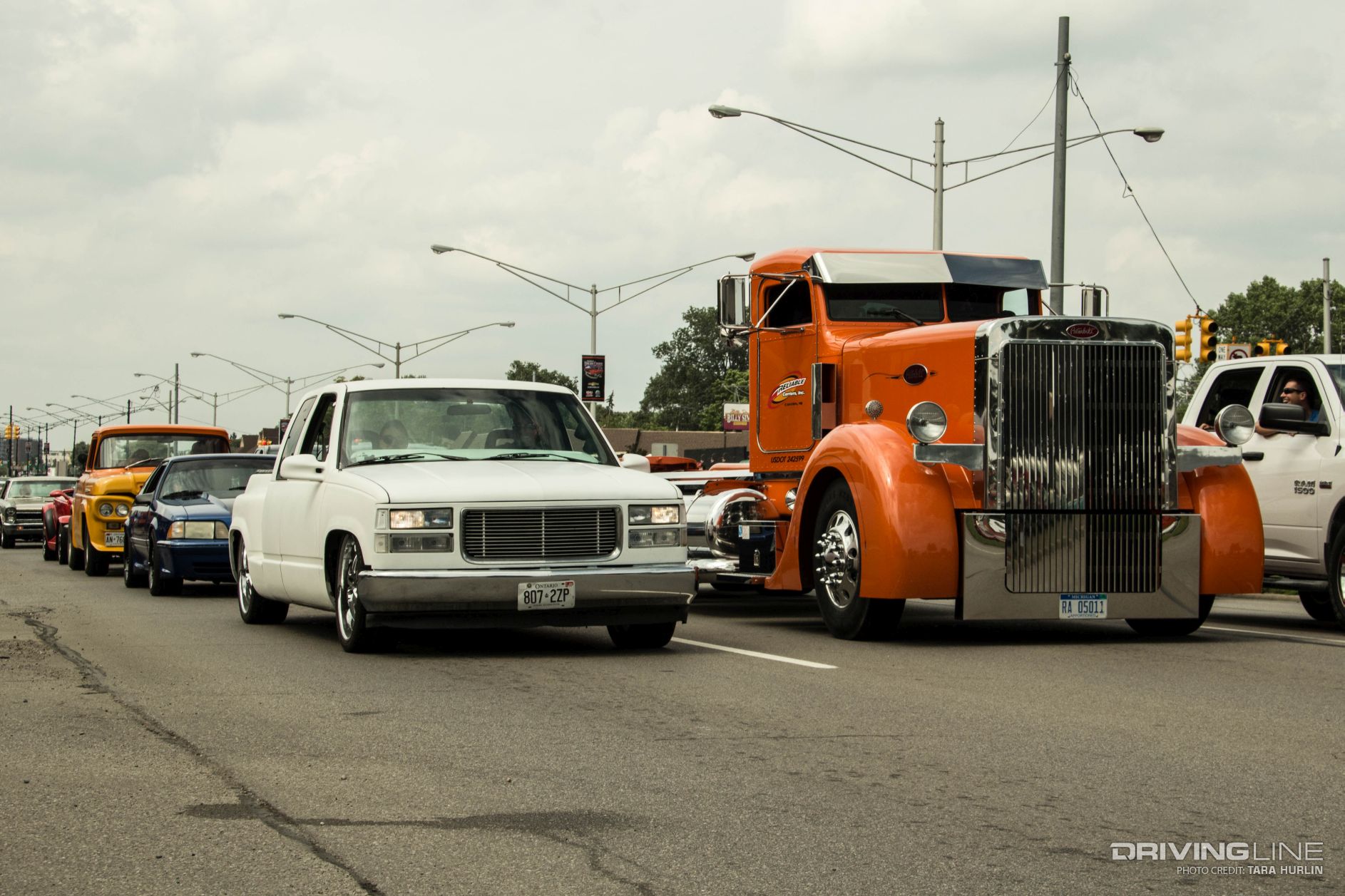The variety of cars is as diverse as Detroit’s culture: Muscle cars, exotics, imports, sport trucks, off-road vehicles, customs, hearses, hot rods and rat rods lined the streets for the moving car show extravaganza. Hand-built one of a kind creations also caught the eyes of the spectators, who lined each side of Woodward Ave with tents and folding chairs to watch the action.