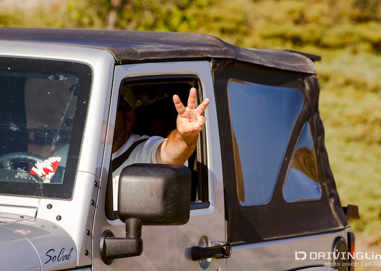 Airing down tires provides a softer ride and better traction in deep sand and on the rocks. On a solid-axle vehicle like the Wrangler, disconnecting the sway bar allows for more suspension articulation, or flex. Articulation is what allows both tires to maintain contact with the ground on uneven surfaces like large boulders, which is key to maintaining traction. After a drivers meeting in which we went over some rules and trail etiquette, we hit the trail. Experienced drivers were interspersed between new off-roaders.